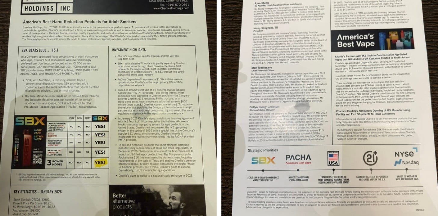 Charlie Holdings - potentially might be interesting to those who willing to dig deeper, President Heny Sicignano, interesting guy…