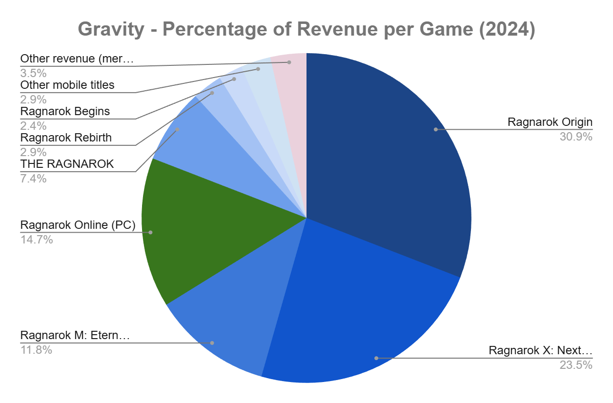Ragnarok Online (PC) is long in the tooth but still generates steady income, about ₩71.3 billion in 2024 (~15% of total revenue). The real cash cows, however, are the mobile spinoffs: