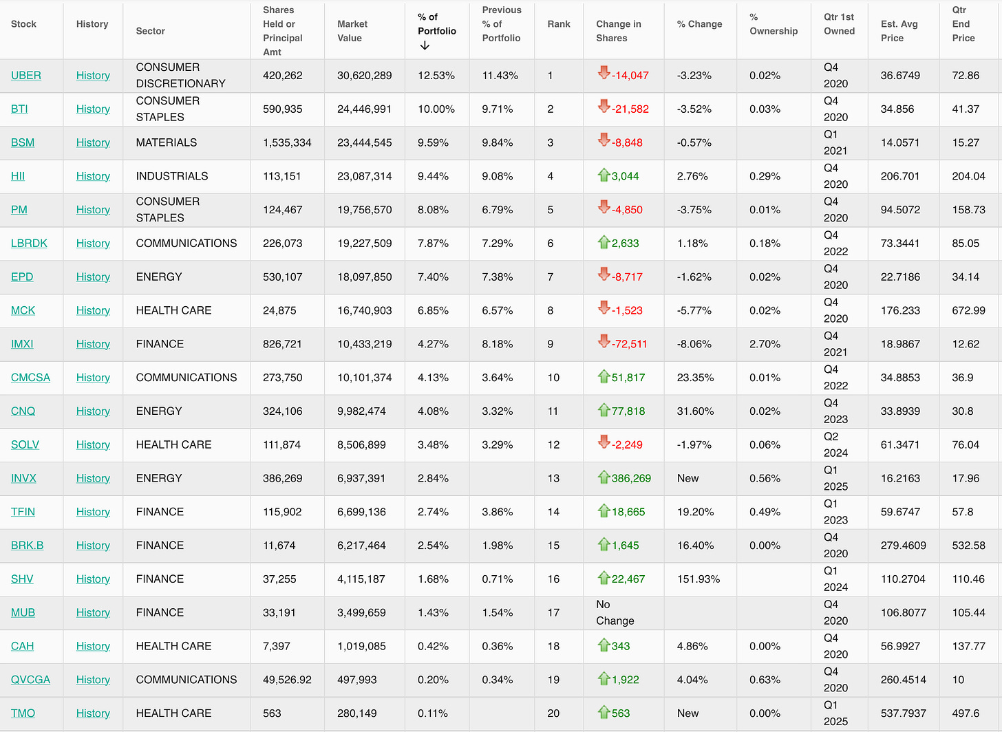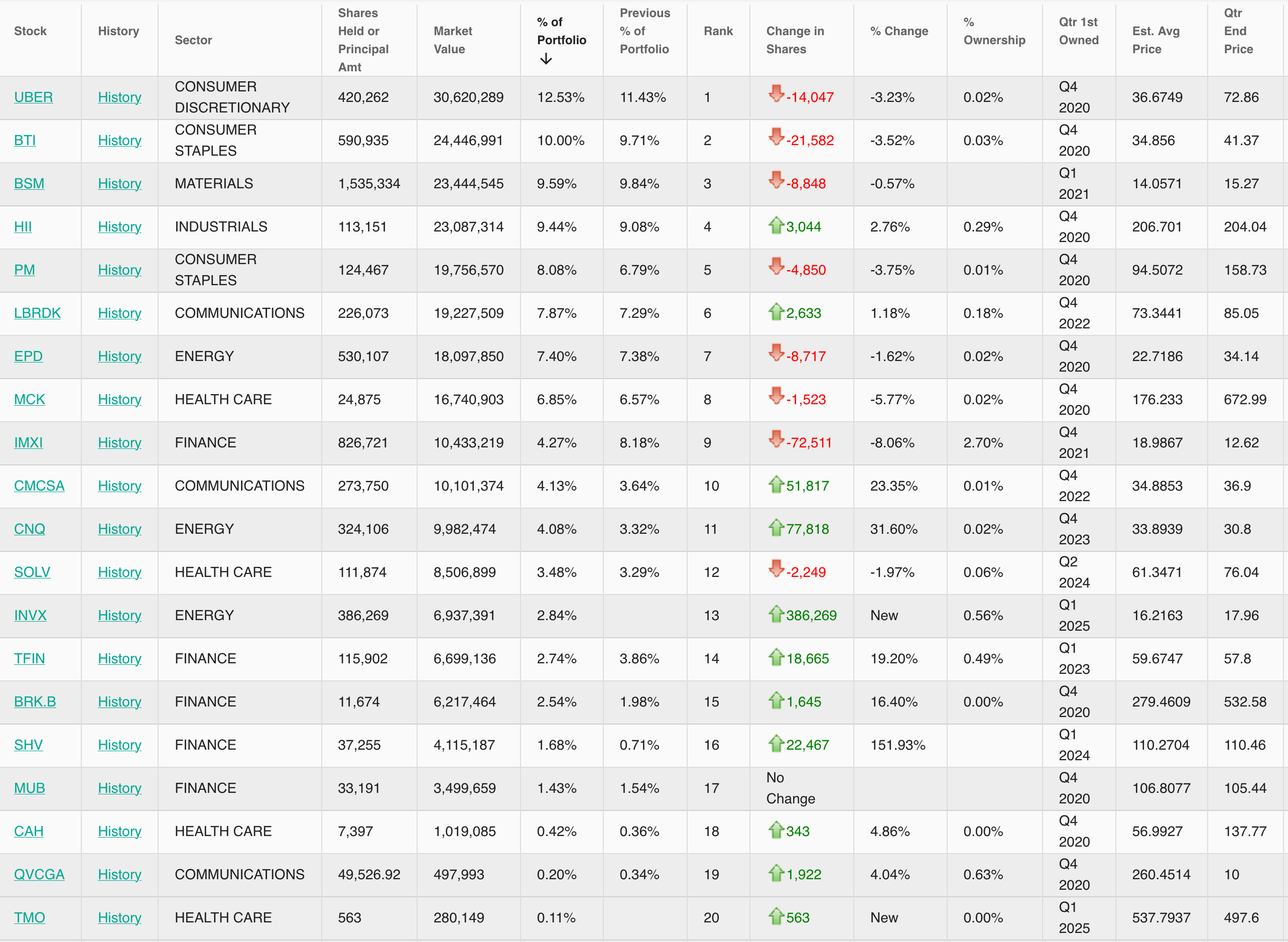 Notable Investors with no change , only reduction, or no new buys that are over 1% of port: