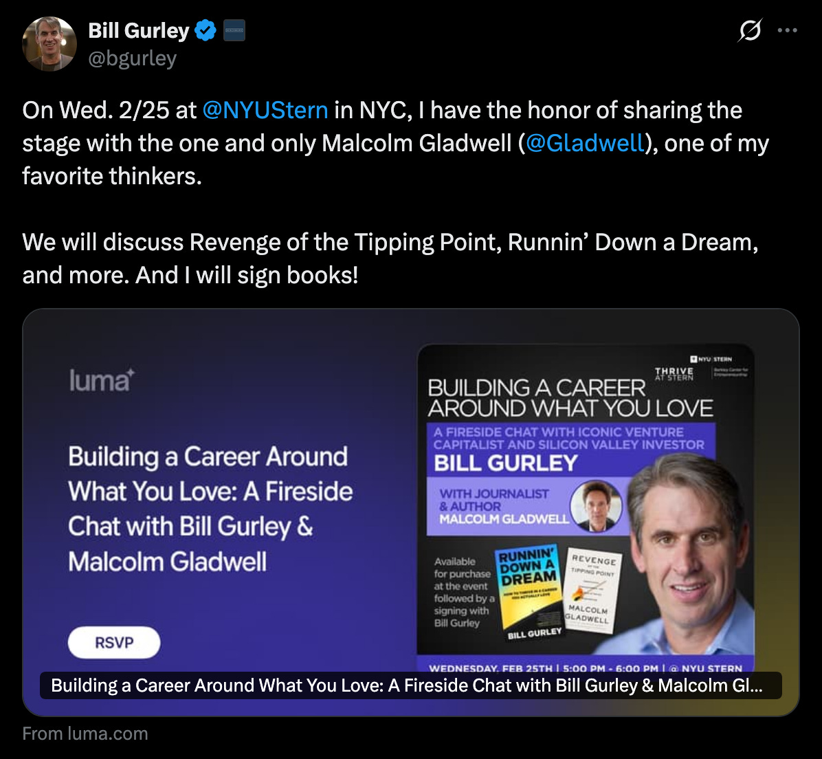Another event that I went to was Bill Gurley and Malcolm Gladwell firechat
