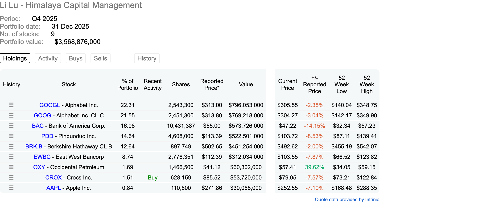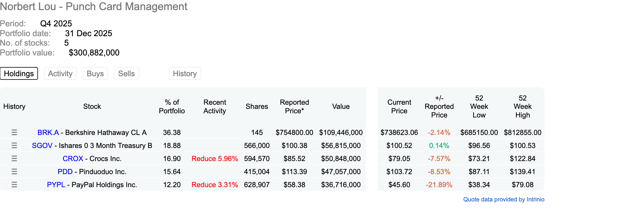 *IAC originally was purchased in 2021, but sold at the end of 2024 for tax loss purposes and re-bought back in 2025.