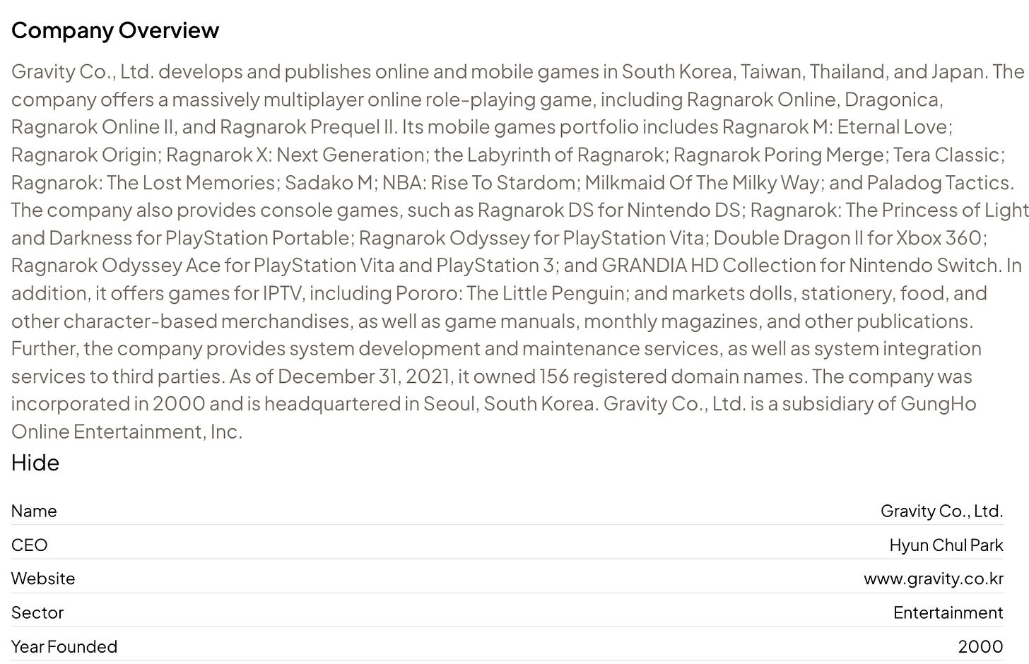 for more up to date updates on GravityThe parent company that owns large stake in $GRVY - Gungho Online Entertainment, a Japanese listed game developer is being targeted by an activist - Strategic Capital, Inc and they have been more active with Gungho …