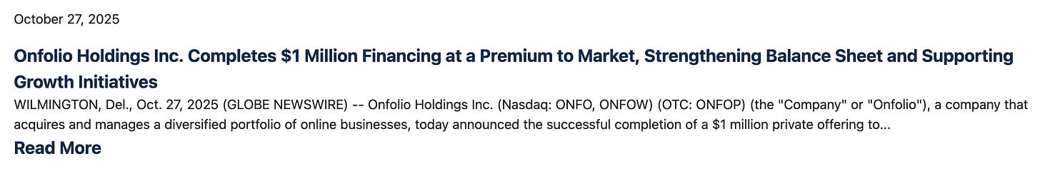 First of, the stock that I said in the last update that I couldn’t speak about was … Onfolio - $ONFO … paid subscribers know that I been following this company for a while and I have been dollar cost averaging into it via my IRA account + I am invested into ONFO via Pref and SPV …